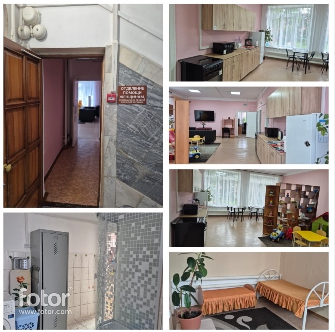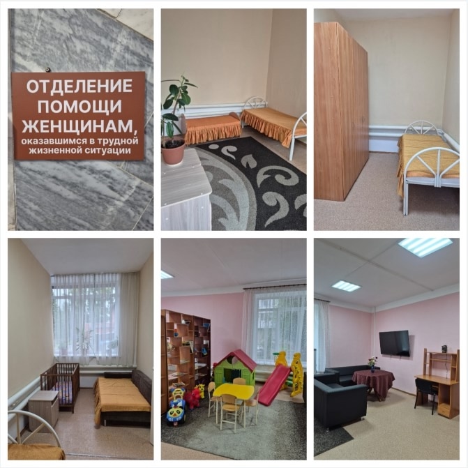 Отделение помощи женщинам, оказавшимся в трудной жизненной ситуации, оборудовано необходимой мебелью (диваны, столы, стулья, шкафы), оргтехникой (телевизор), электрооборудованием, бытовой техникой (холодильник, стиральная машина), мягким инвентарем, посудой, столовыми приборами, игрушками и развивающими материалами для детского творчества.